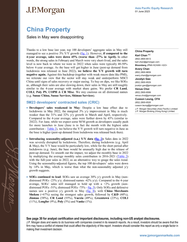 【J.P. Morgan】【20230601】China Property Sales in May were disappointing-36页 行业研究