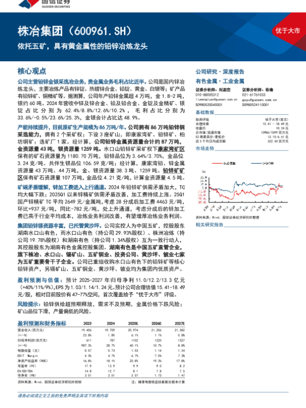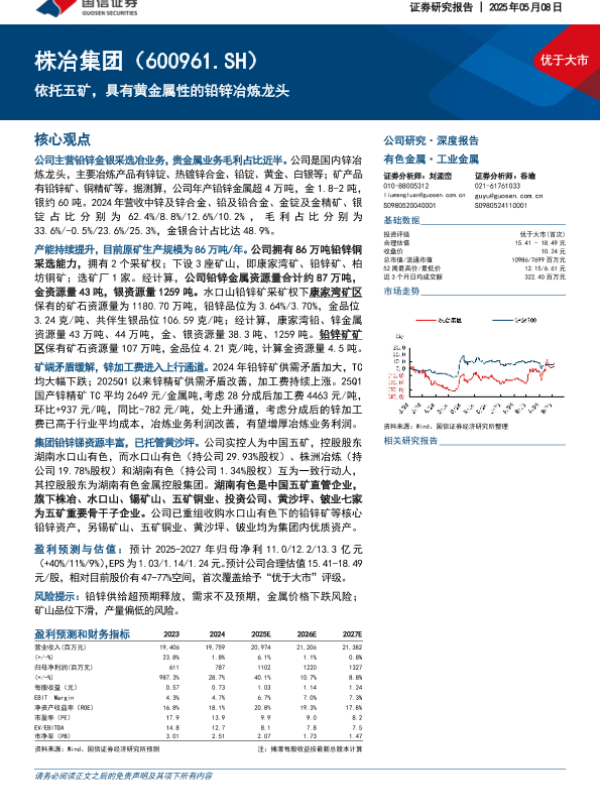 【国信证券】【20250508】株冶集团(600961)依托五矿,具有黄金属性的铅锌冶炼龙头-24页 公司研究