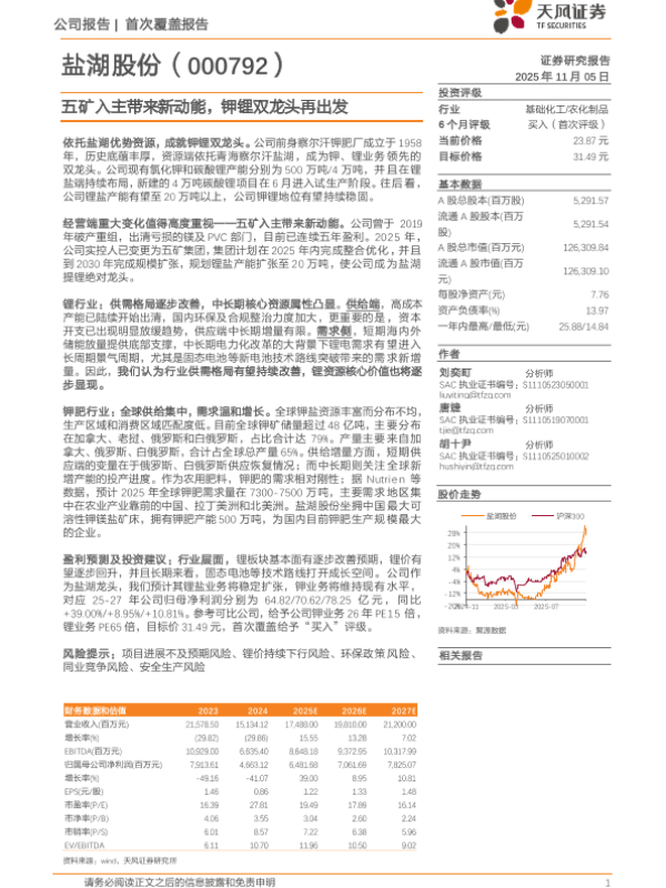 【天风证券】【202511】五矿入主带来新动能,钾锂双龙头再出发-22页 证券期货研究报告