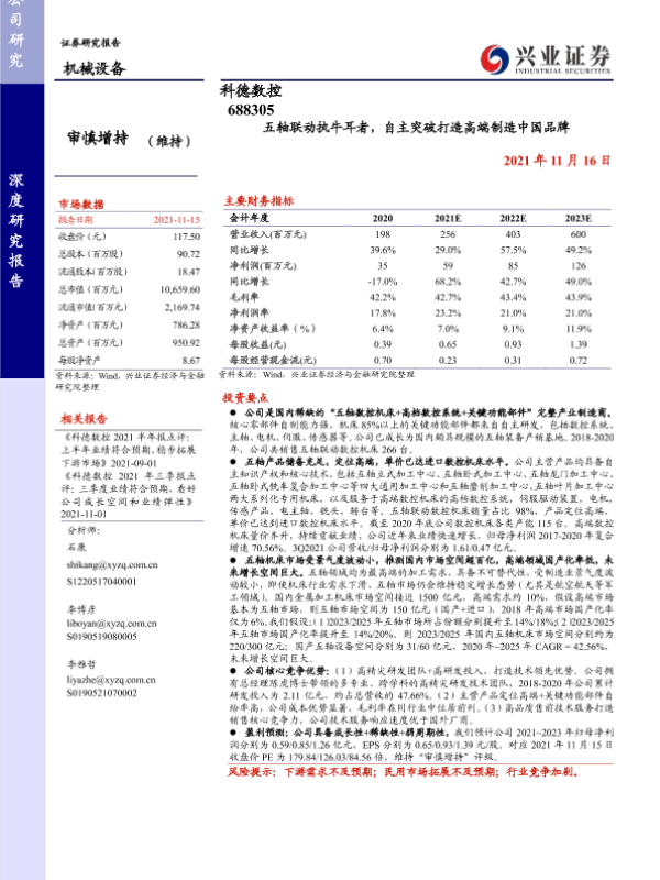 【兴业证券】【20211116】五轴联动执牛耳者,自主突破打造高端制造中国品牌-43页 行业研究