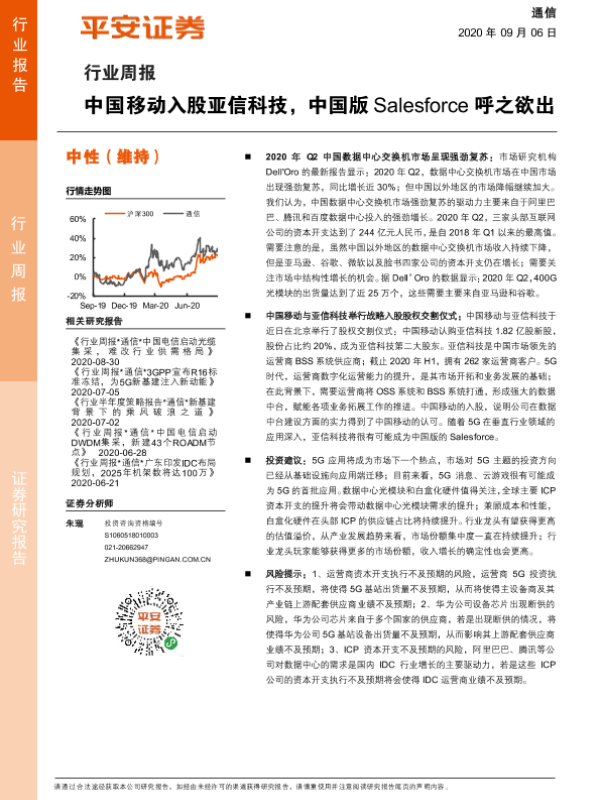 【平安证券】【20200906】通信行业周报:中国移动入股亚信科技,中国版Salesforce呼之欲出-5页 行业研究