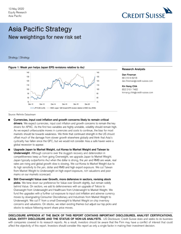 【瑞信(Credit Suisse)】【20220513】瑞信-亚太地区投资策略-新风险集的新权重-84页 行业研究