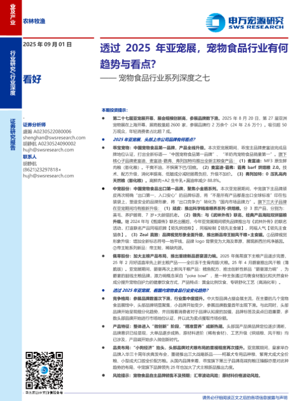 【申万宏源】【202509】透过2025年亚宠展,宠物食品行业有何趋势与看点?-21页 证券期货研究报告