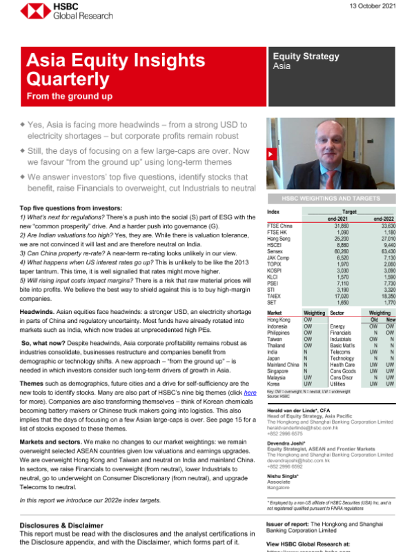 【The Hongkong and Shanghai Banking Corporation Limited】【20211013】HSBC-亚太地区投资策略-亚洲股票洞察季刊:从头开始-57页 行业研究