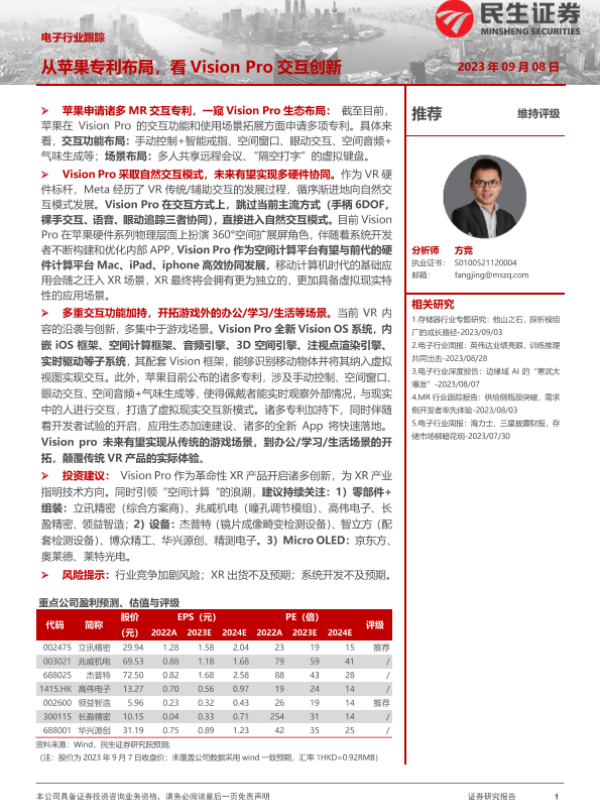 【民生证券】【20230908】从苹果专利布局,看Vision Pro交互创新-16页 行业研究