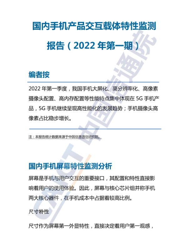 【中国信通院】【20220101】国内手机产品交互载体特性监测报告(2022年第一期)-11页 行业研究