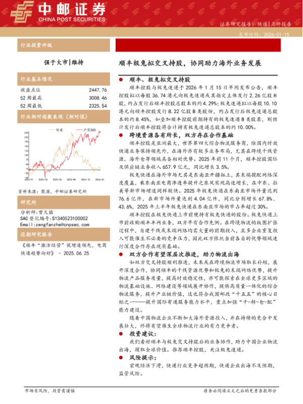 【中邮证券】【202601】快递:顺丰极兔拟交叉持股,协同助力海外业务发展-4页 证券期货研究报告