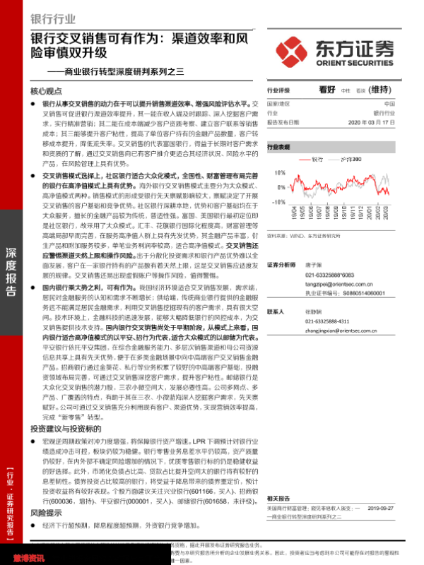 【东方证券】【20200317】银行交叉销售可有作为:渠道效率和风险审慎双升级-19页 行业研究