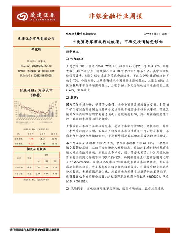 【爱建证券】【20190506】非银金融行业周报:中美贸易摩擦或再起波澜,市场交投情绪受影响-11页 行业研究