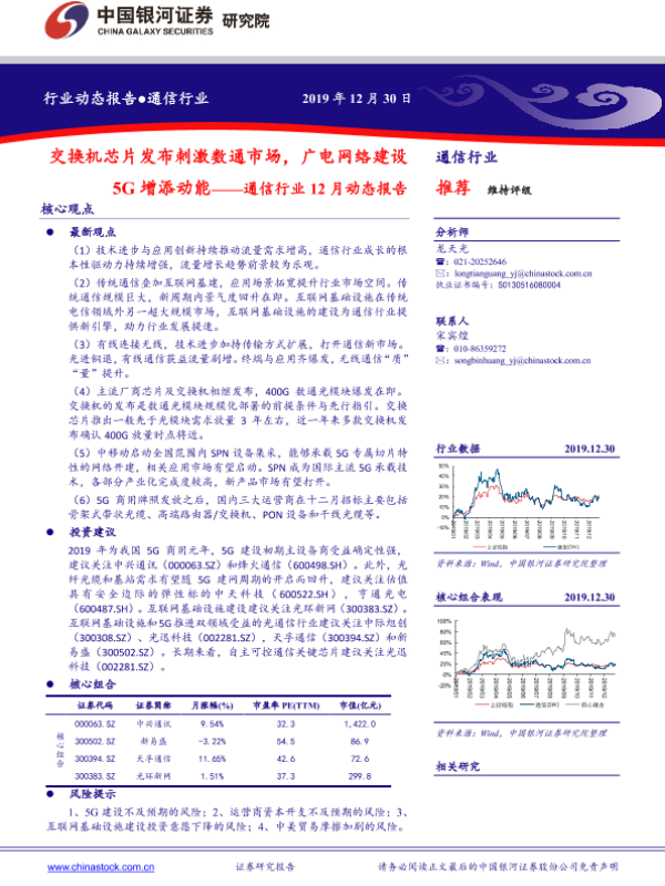 【银河证券】【20191230】通信行业12月动态报告:交换机芯片发布刺激数通市场,广电网络建设5G增添动能-34页 行业研究