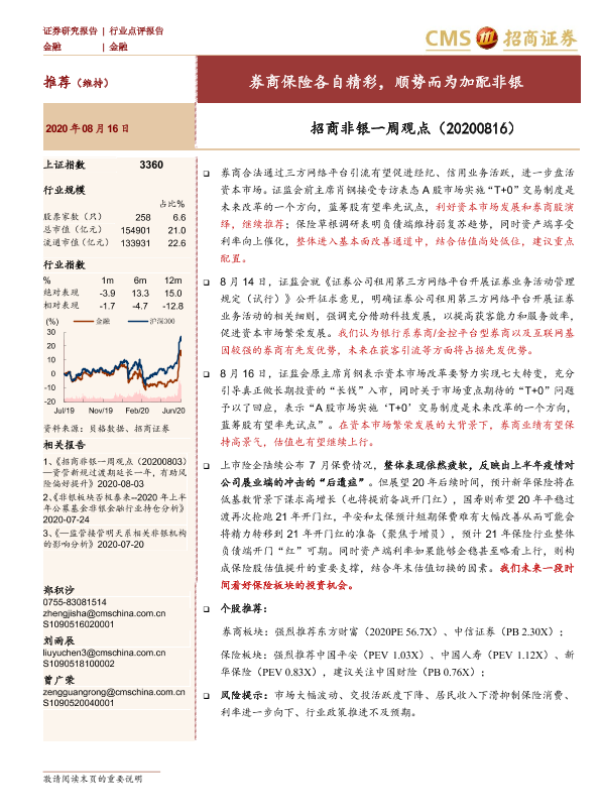 【海通证券】【20200816】招商非银一周观点:券商保险各自精彩,顺势而为加配非银-3页 行业研究