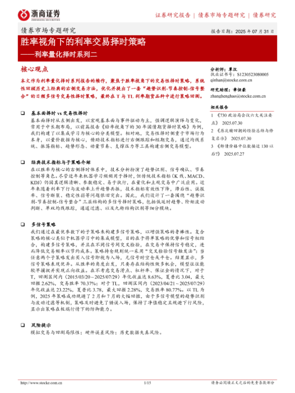 【浙商证券】【20250731】胜率视角下的利率交易择时策略-15页 证券期货研究报告