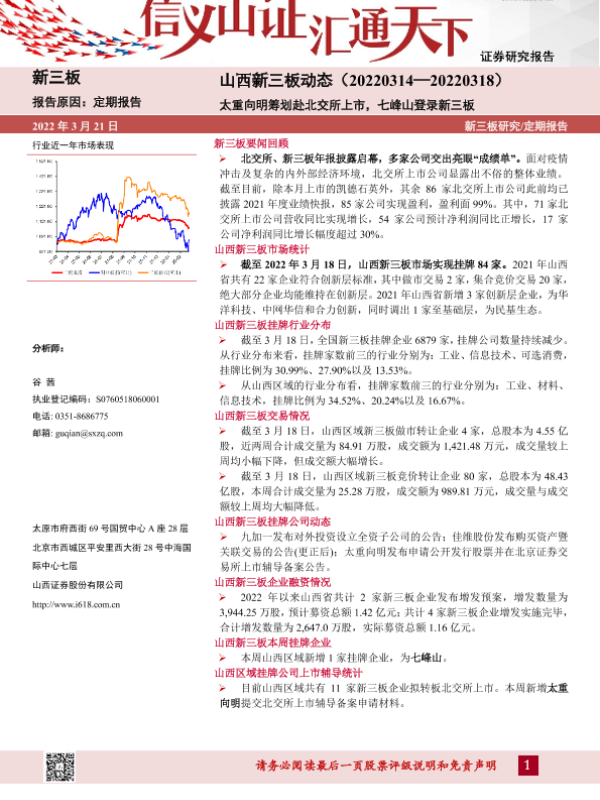 【山西证券】【20220321】山西新三板动态:太重向明筹划赴北交所上市,七峰山登录新三板-15页 行业研究