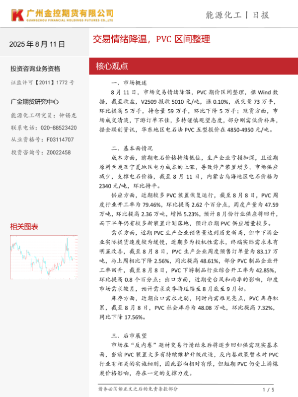 【广金期货】【20250811】广金期货-能源化工日报:交易情绪降温,PVC区间整理-5页 证券期货研究报告