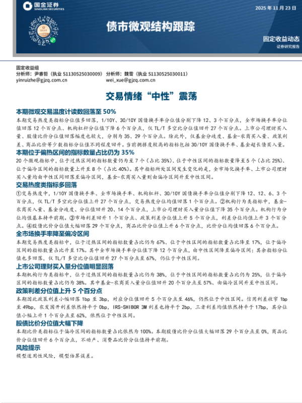 【国金证券】【202511】债市微观交易温度计-8页 证券期货研究报告
