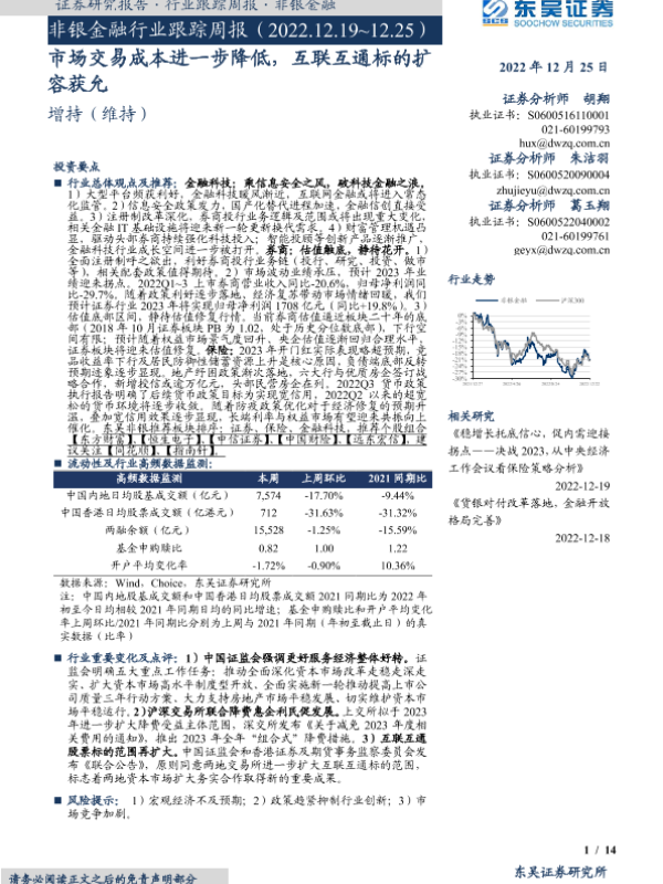 【东吴证券】【20221225】非银金融行业跟踪周报:市场交易成本进一步降低,互联互通标的扩容获允-14页 行业研究