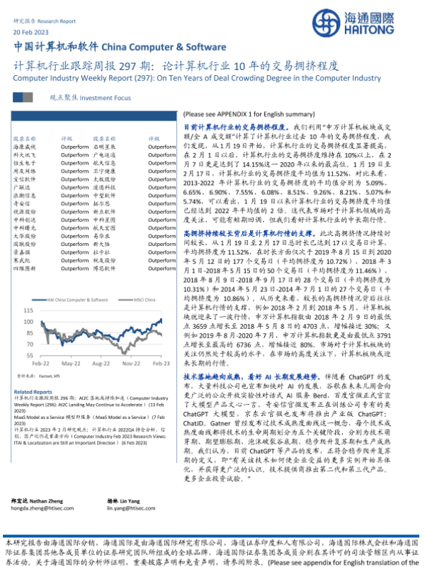 【海通国际】【20230220】计算机行业跟踪周报297期:论计算机行业10年的交易拥挤程度-11页 行业研究