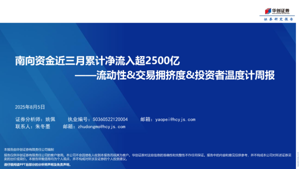 【华创证券】【20250805】流动性&交易拥挤度&投资者温度计周报:南向资金近三月累计净流入超2500亿-36页 证券期货研究报告