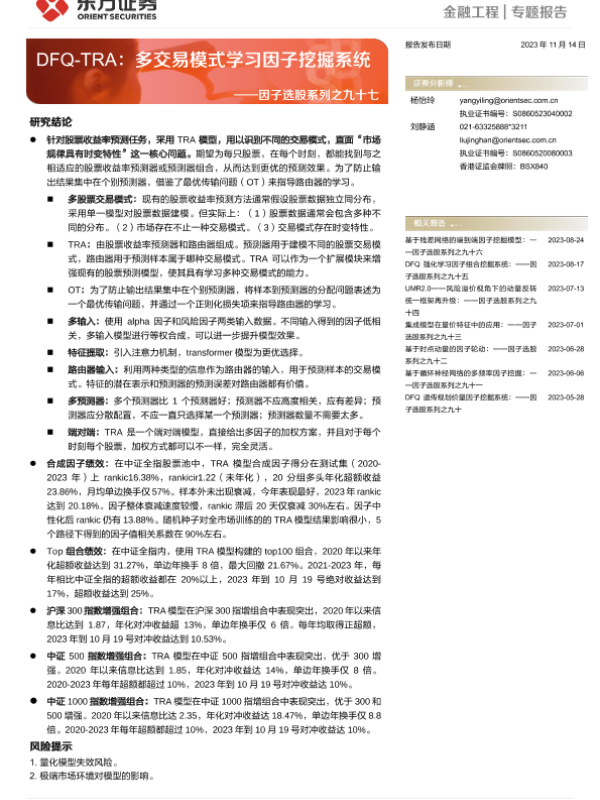 【东方证券】【20231114】因子选股系列之九十七:DFQ_TRA,多交易模式学习因子挖掘系统-38页 行业研究