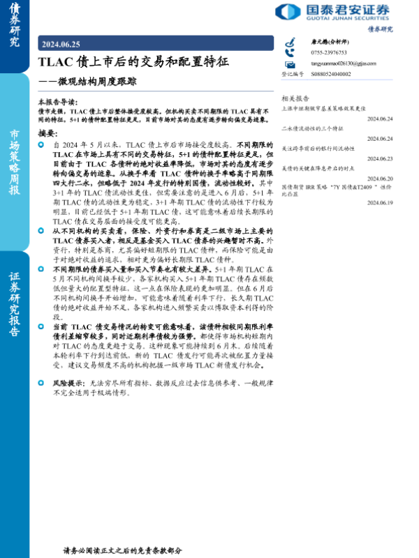 【国泰君安证券】【20240625】微观结构跟踪:TLAC债上市后的交易和配置特征-13页 行业研究