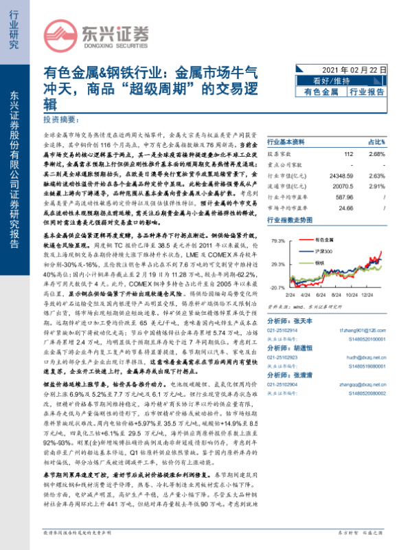【东兴证券】【20210222】有色金属&钢铁行业:金属市场牛气冲天,商品“超级周期”的交易逻辑-24页 行业研究