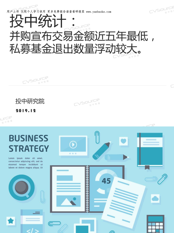 【投中研究院】【201912】并购宣布交易金额近五年最低,私募基金退出数量浮动较大-23页 行业研究
