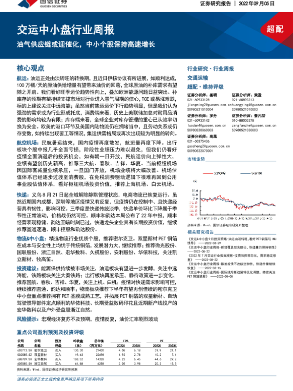 【国信证券】【20220905】交运中小盘行业周报:油气供应链或迎催化,中小个股保持高速增长-30页 行业研究