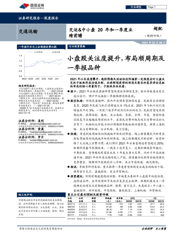 【国信证券】【20210309】交运&中小盘20年和一季度业绩前瞻-13页 行业研究