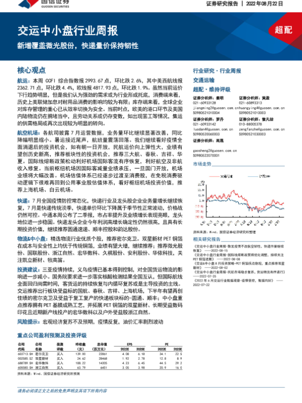 【国信证券】【20220822】交运中小盘行业周报:新增覆盖微光股份,快递量价保持韧性-28页 行业研究