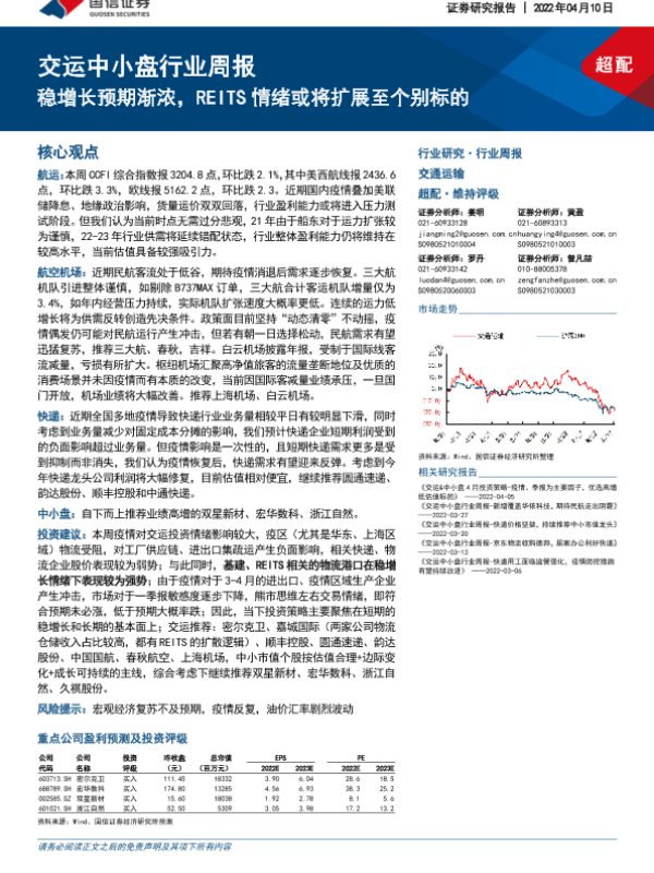 【国信证券】【20220410】交运中小盘行业周报:稳增长预期渐浓,REITS情绪或将扩展至个别标的-23页 行业研究