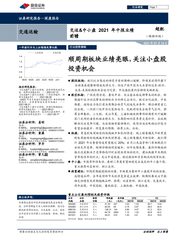 【国信证券】【20210714】交运&中小盘2021年中报业绩前瞻-13页 行业研究