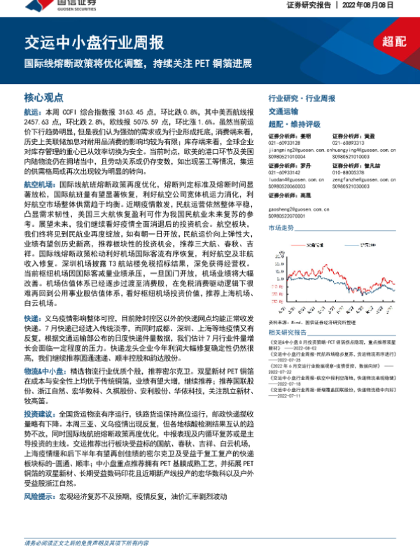 【国信证券】【20220808】交运中小盘行业周报:国际线熔断政策将优化调整,持续关注PET铜箔进展-27页 行业研究