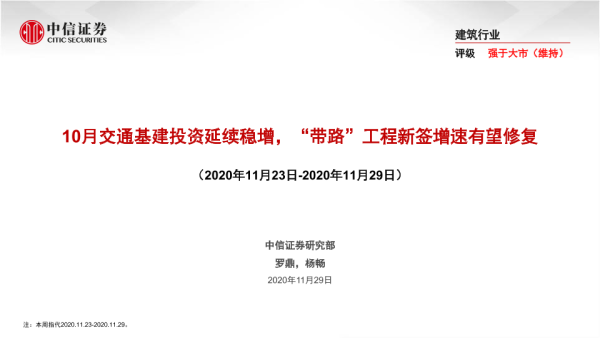 【中信证券】【20201129】10月交通基建投资延续稳增,“带路”工程新签增速有望修复-46页 行业研究