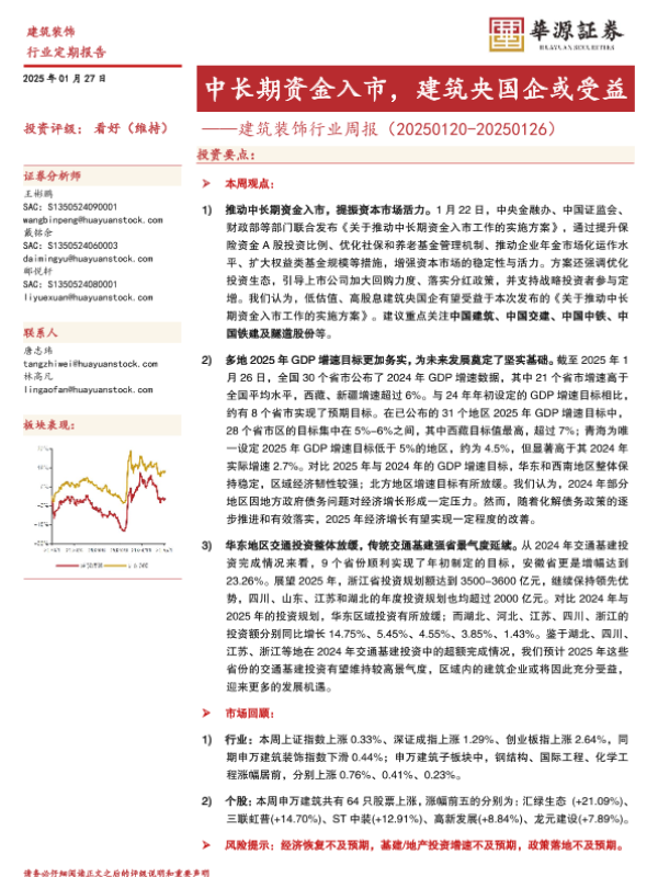 【华源证券】【20250127】建筑装饰行业周报:中长期资金入市,建筑央国企或受益-13页 行业研究