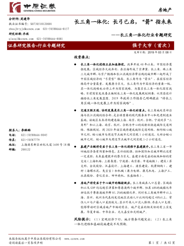 【中原证券】【20190308】长三角一体化:长弓已启,“箭”指未来-42页 行业研究