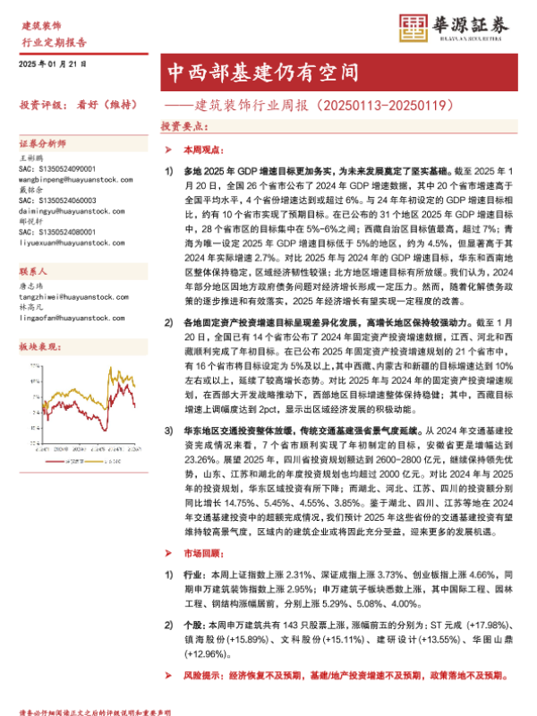 【华源证券】【20250121】建筑装饰行业周报:中西部基建仍有空间-13页 行业研究