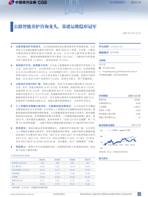 【银河证券】【202512】公路智能养护咨询龙头,基建运维隐形冠军-27页 证券期货研究报告