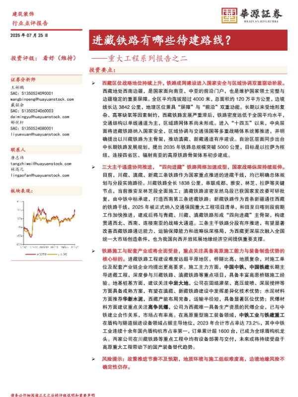 【华源证券】【202507】进藏铁路有哪些待建路线?——重大工程系列报告之二-12页 证券期货研究报告