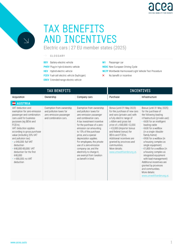 【ACEA】【2025】电动车税收优惠及激励政策:27个欧盟成员国(2025年)-11页 政策文件