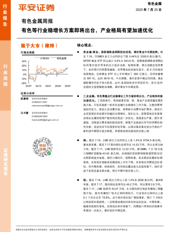 【平安证券】【20250720】有色金属行业周报:有色等行业稳增长方案即将出台,产业格局有望加速优化-13页 证券期货研究报告