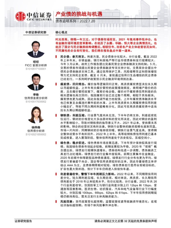 【中信证券】【20220720】债市启明系列:产业债的挑战与机遇-33页 行业研究