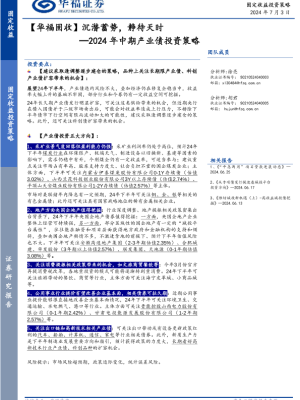 【华福证券】【20240703】【华福固收】2024年中期产业债投资策略:沉潜蓄势,静待天时-21页 行业研究