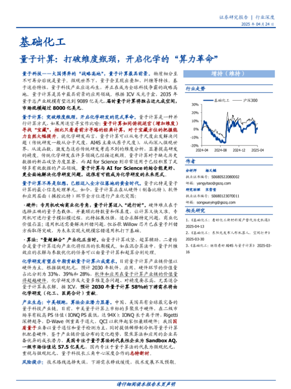 【国盛证券】【20250424】基础化工行业量子计算:打破维度瓶颈,开启化学的“算力革命”-35页 证券期货研究报告