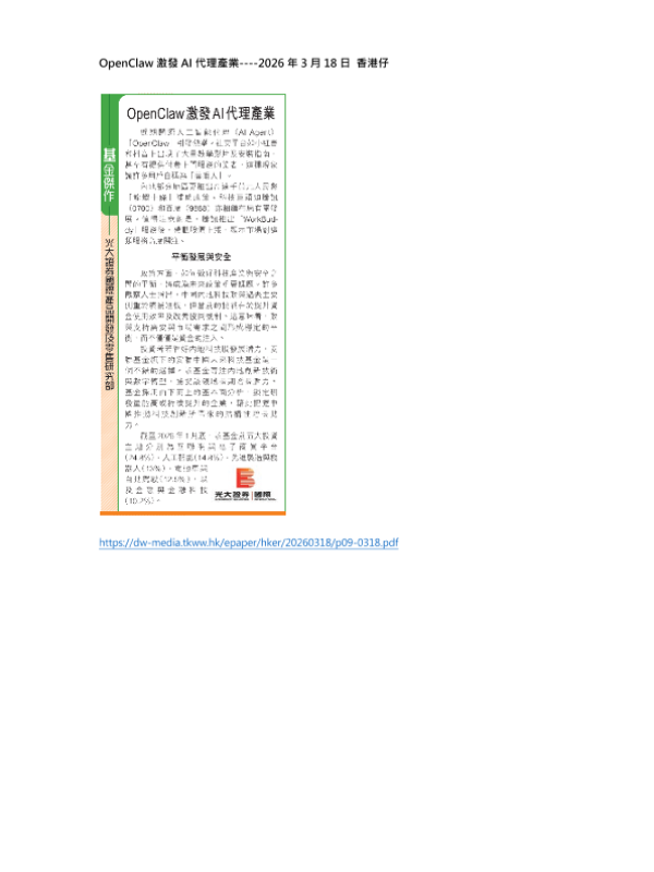 【光大证券(国际)】【202603】OpenClaw激发AI代理产业-1页 证券期货研究报告