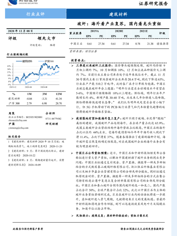 【财信证券】【20201208】玻纤:海外看产业复苏,国内看龙头重组-3页 行业研究