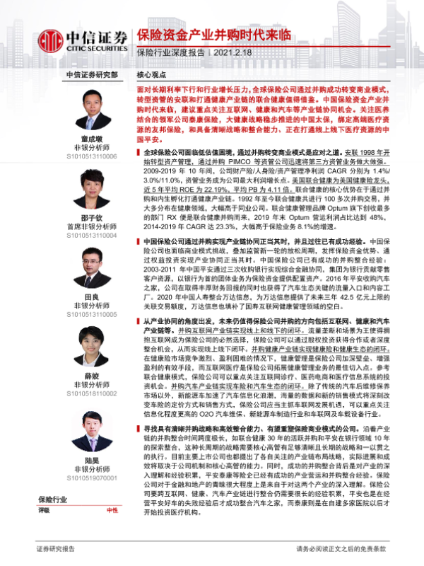 【中信证券】【20210218】保险资金产业并购时代来临-52页 行业研究
