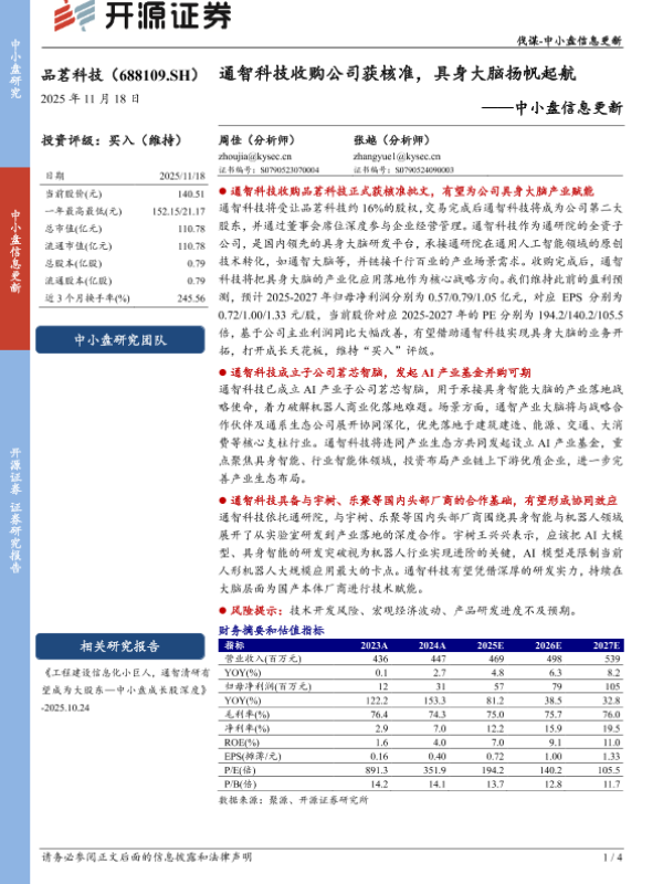【开源证券】【202511】中小盘信息更新:通智科技收购公司获核准,具身大脑扬帆起航-4页 证券期货研究报告