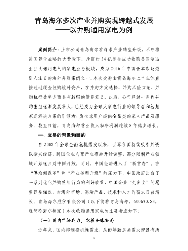 【青岛海尔】【20241108】青岛海尔多次产业并购实现跨越式发展——以并购通用家电为例-18页 行业研究