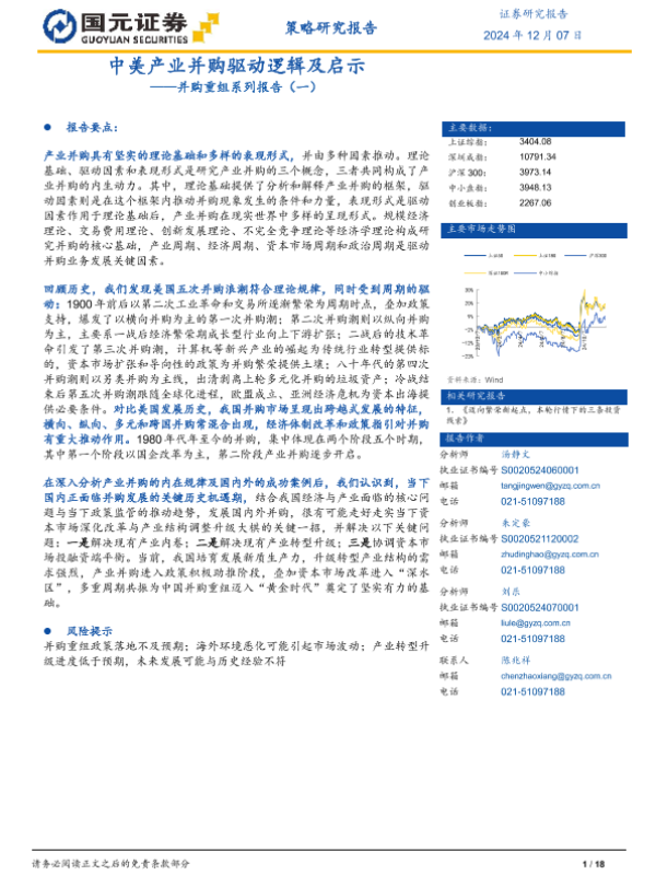【国元证券】【20241207】2024年12月10日更新-【国元证券】并购重组系列报告(一):中美产业并购驱动逻辑及启示-18页 行业研究