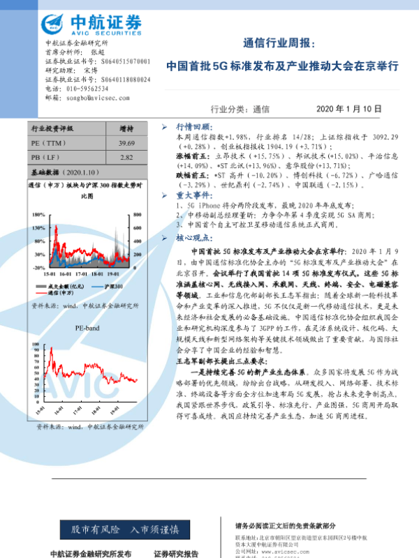 【中航证券】【20200110】20200110-中航证券-通信行业周报:中国首批5G标准发布及产业推动大会在京举行-3页 行业研究
